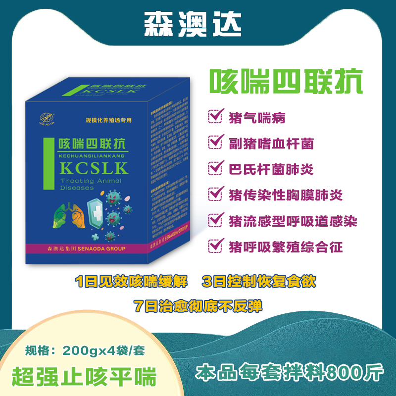 2、豬呼吸繁殖綜合征(PRRSV) 、豬流感型呼吸道感染(SIV)、圓環(huán)病毒?。≒CV2)、豬呼吸道冠狀病毒病(PRCV)、豬偽狂犬病(PRV)等病毒性呼吸道疾病引起的繼發(fā)感染或二次感染;多病原及多病因混合感染的呼吸道綜合征的保健預(yù)防、治療。